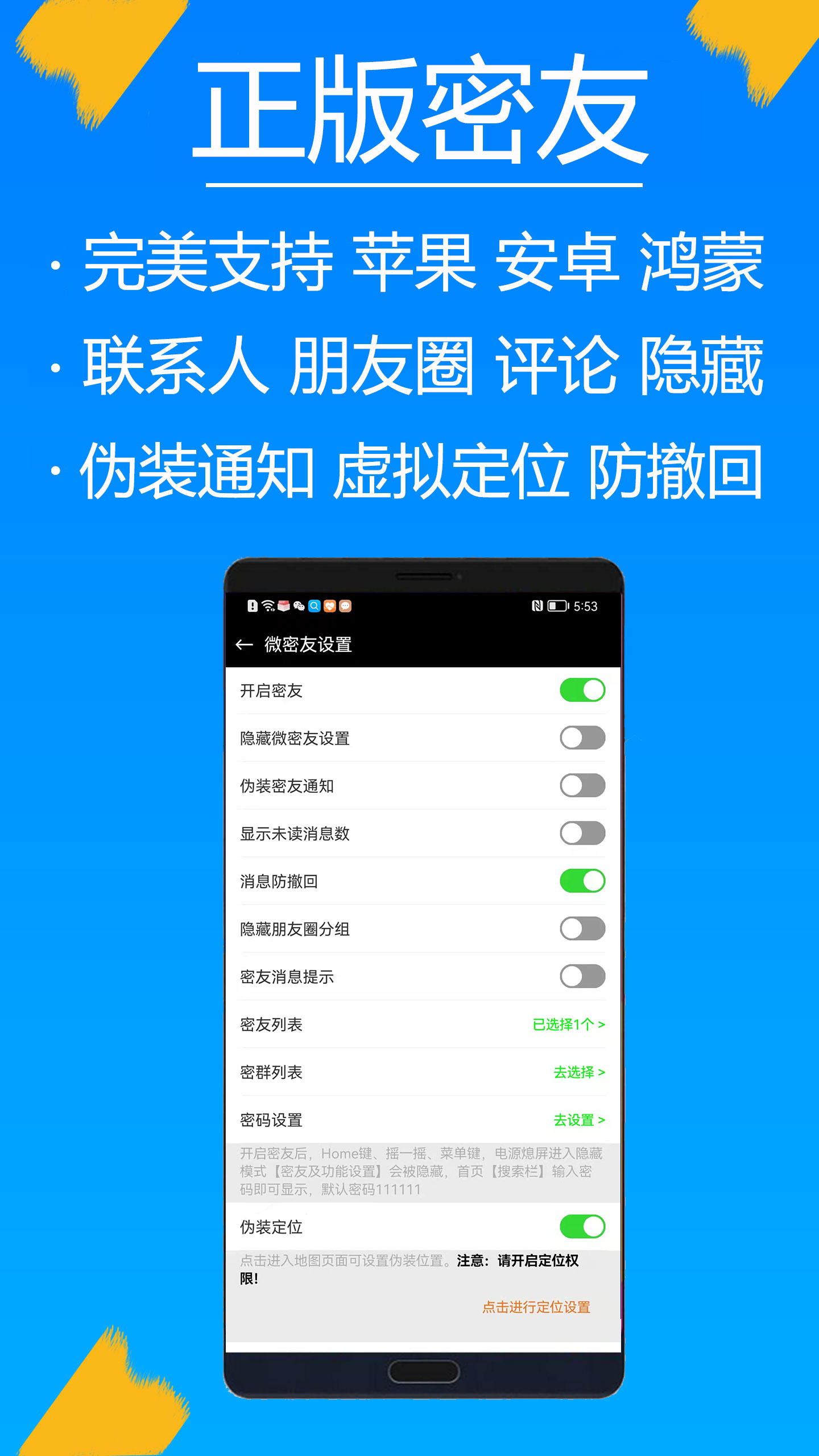目前市面上第一款最稳定、功能最全的Android版、IOS版,免root免越狱完美密友、稳定防封。