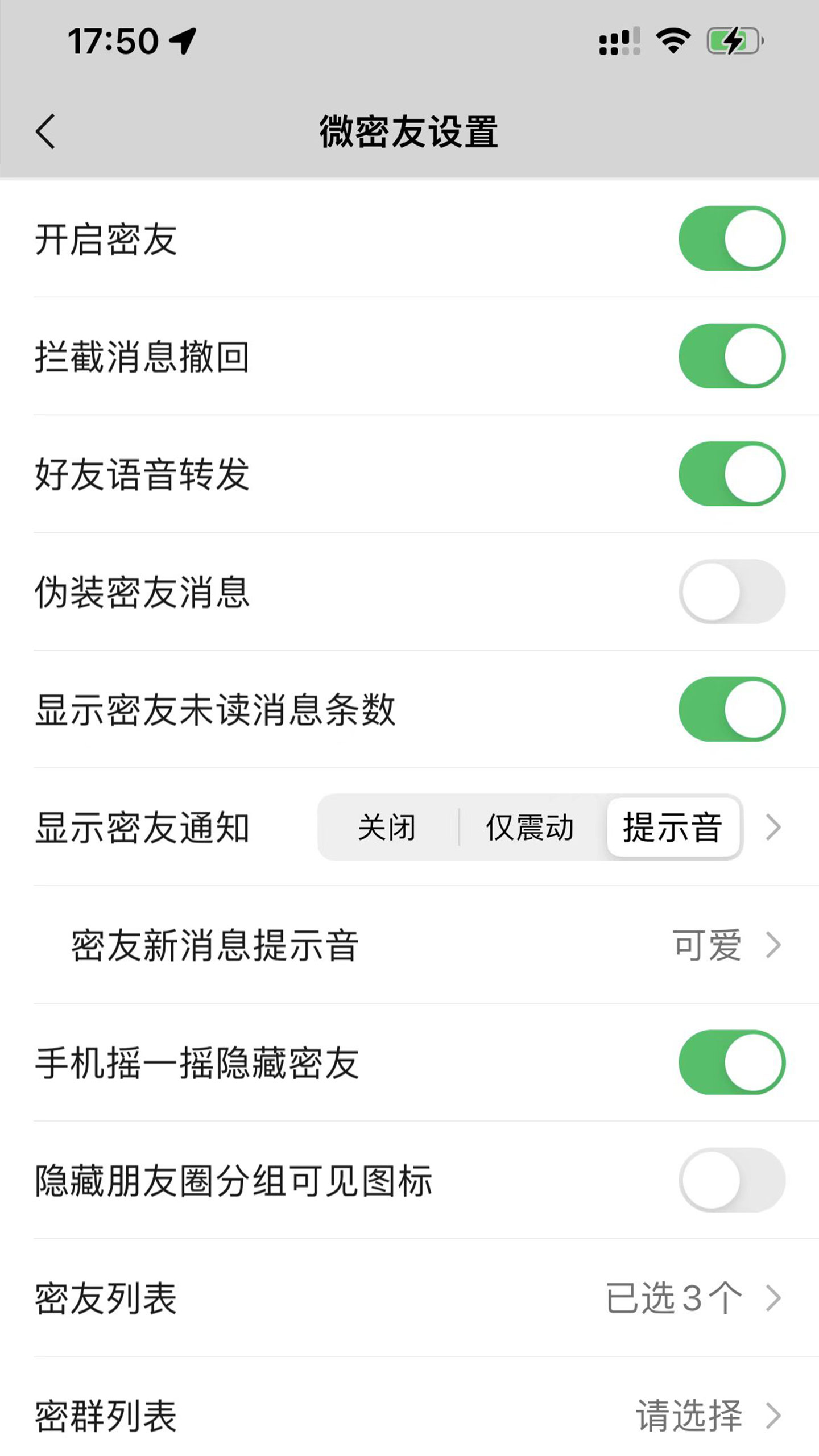 【显示密友未读消息数】开启后隐藏模式下会提醒未读消息数,用于提醒您有未读密友消息。
